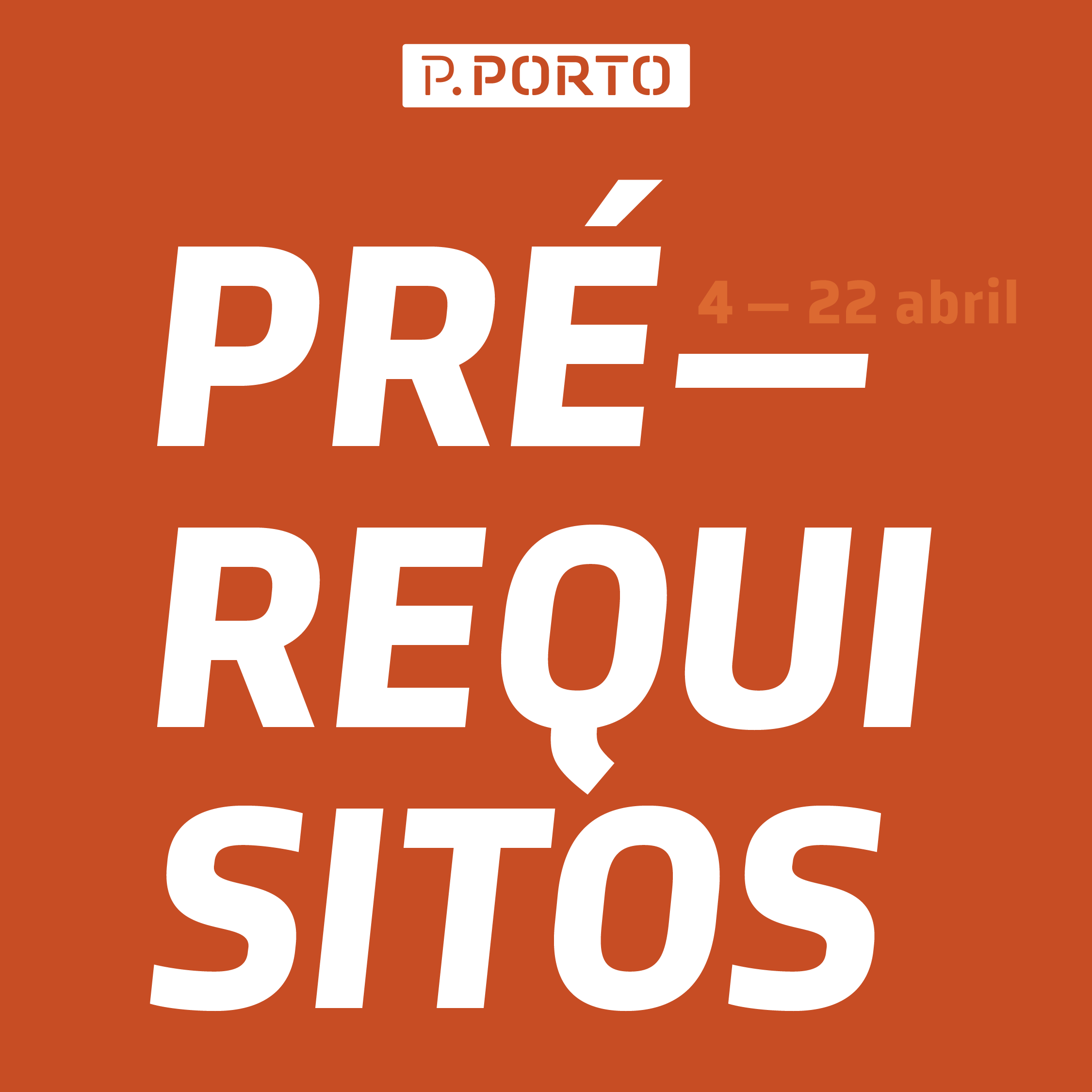 Toda a informação encontra-se disponível no Sistema de Candidaturas do P.PORTO mediante seleção do Concurso: Pré-Requisitos. Após seleção do concurso, e previamente à formalização da candidatura, os candidatos devem consultar toda a regulamentação no separador Documentos.